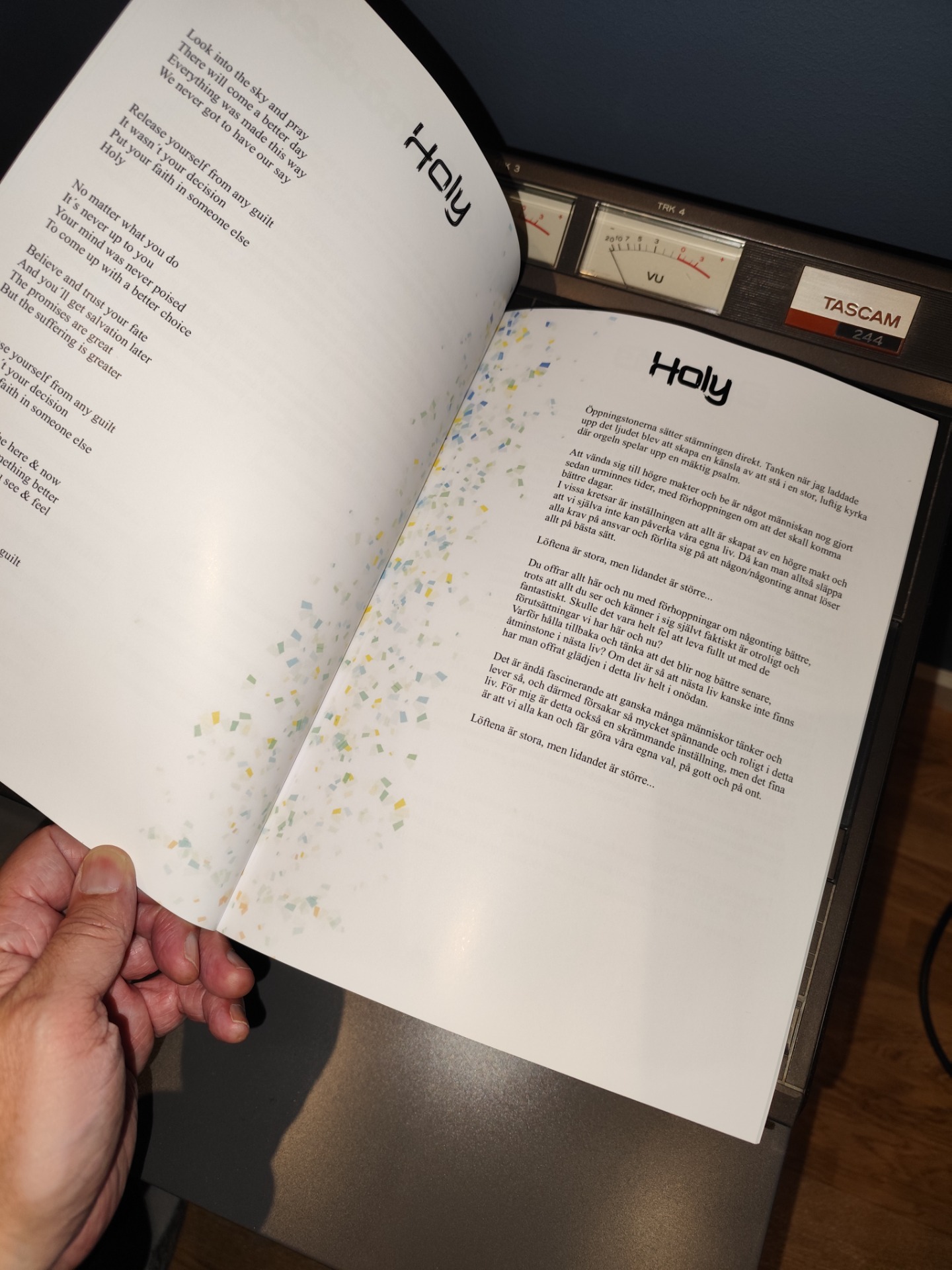 - En tryckt bok med texterna till alla låtar på skivan samt mina noteringar om